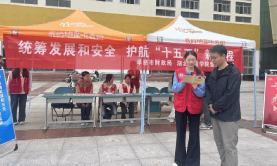 4月15日,迎来了第十一个全民国家安全教育日,我系联合孝感市财政局,在校园开展以统筹发展和安全,护航“十五五”新征程为主题的普法宣传活动,将国家安全知识融入校园育人,铸牢青年学生安全思想防线。